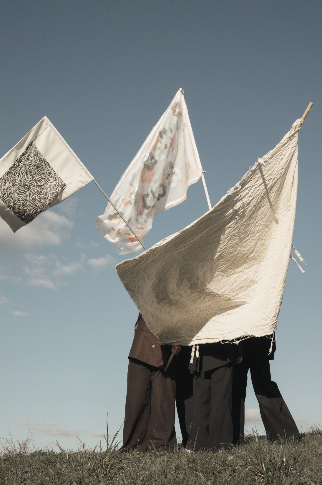 Die versammelten Flaggen bilden ein offenes Feld von Haltungen: Sie zeigen Risse im Bestehenden, tragen Rebellion und Vision in sich und formulieren Ideen dessen, was noch werden kann. The Choir ist ein kollektiver Ausdruck und eine Einladung zur Reflexion: